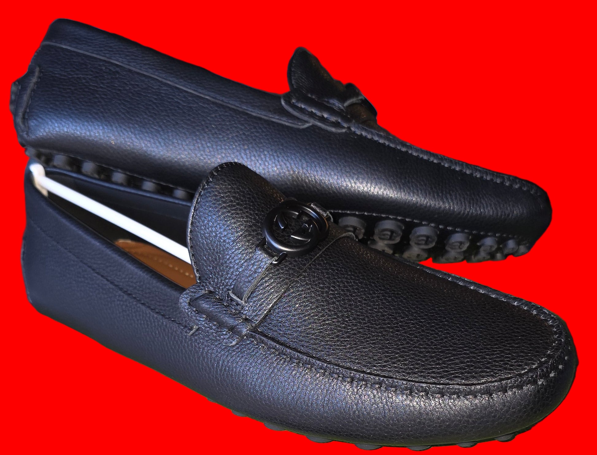 Gucci Men's Havel Interlocking G Leather Drivers Black Size 11