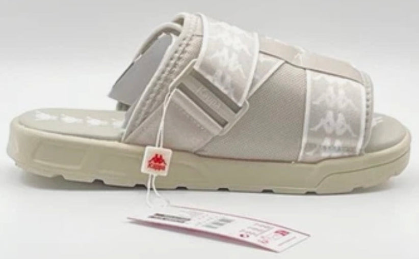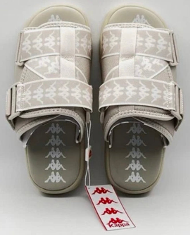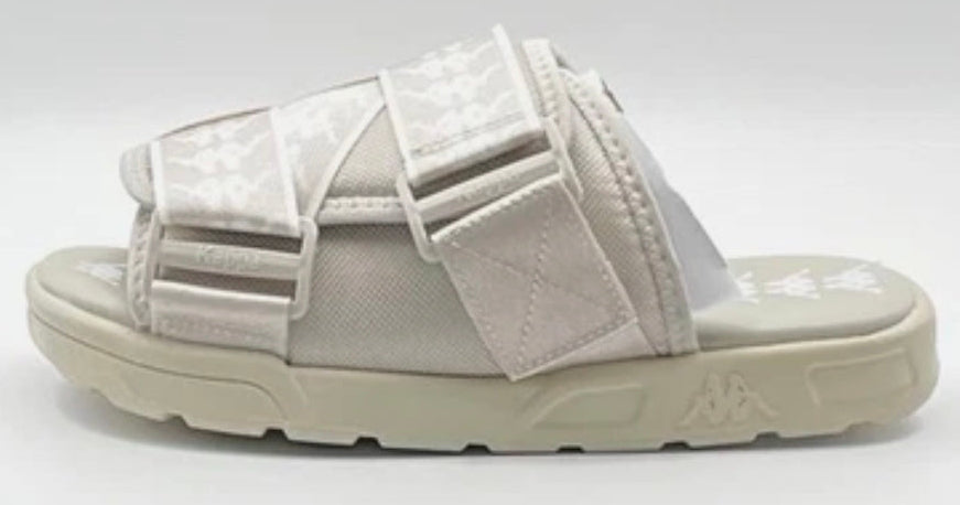Sport-inspired unisex slides featuring the iconic Kappa Omini logo repeat and logo taping with a chunky sole.