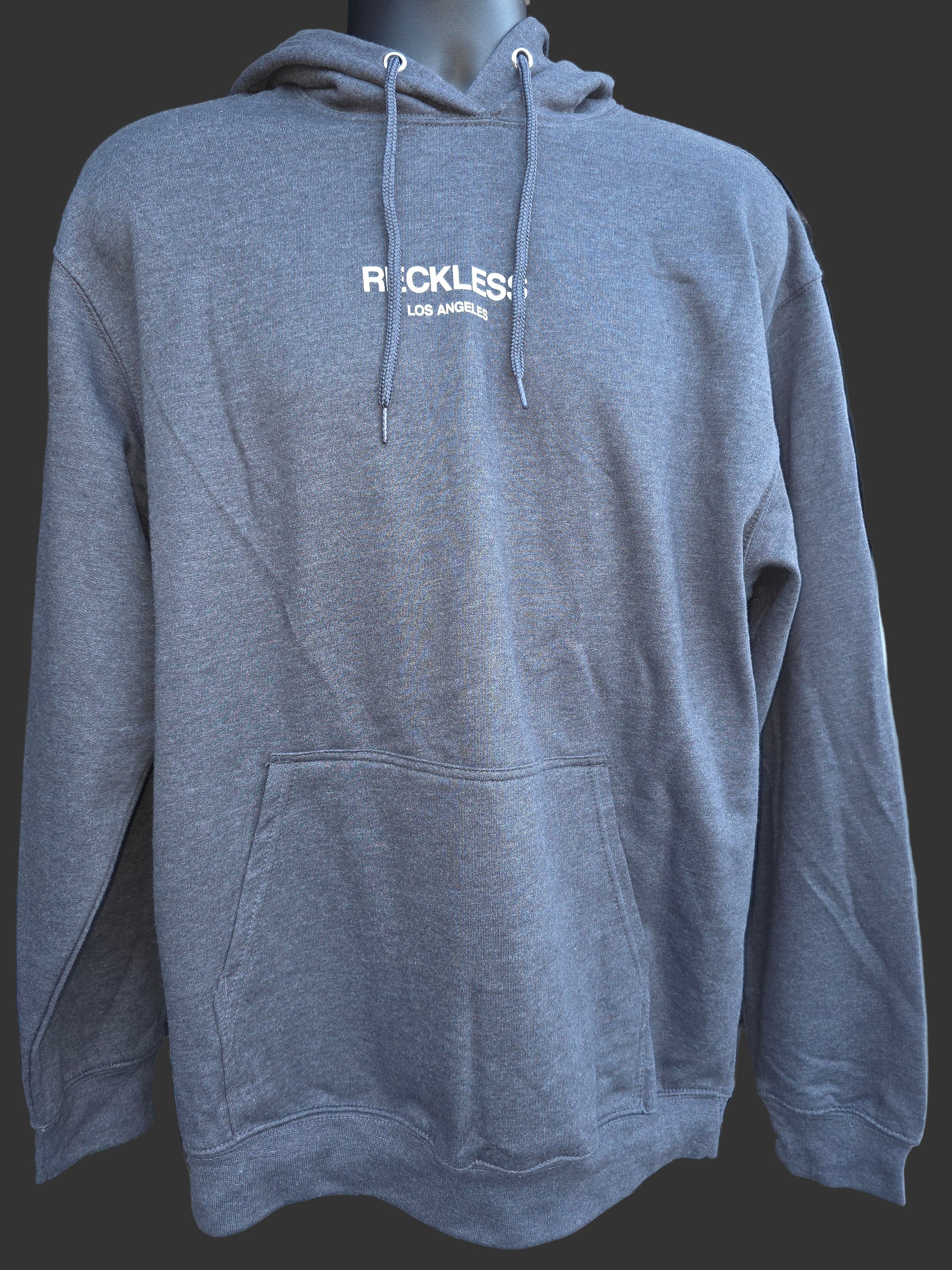 Dark gray pullover Young and Reckless fleece Hoodie. White lettering. Made from high quality material.